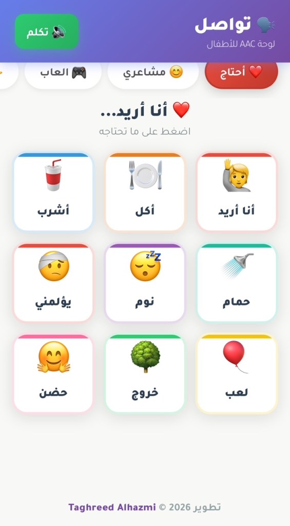 تطبيق تواصل والذي يعمل كادة مساعدة للاطفال الغير ناطقين واسرهم في